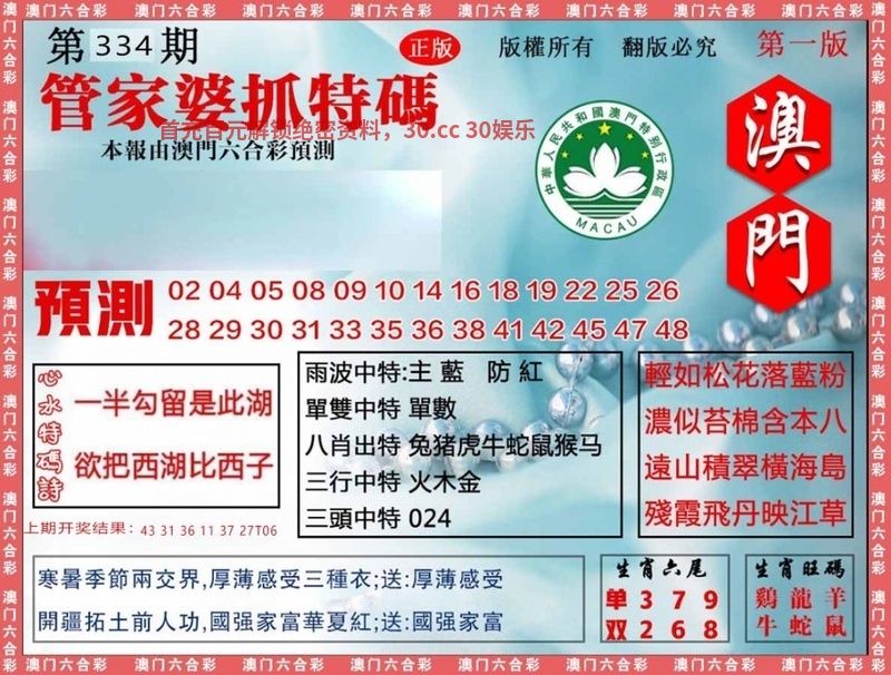335期:稳一波两头【蓝波+3.4头】狗44准