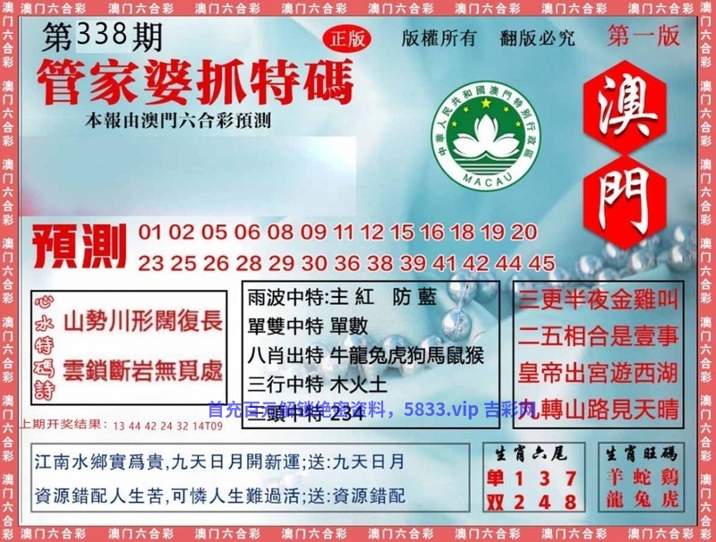 338期:九肖(兔虎鸡马龙鼠猴羊开狗08
